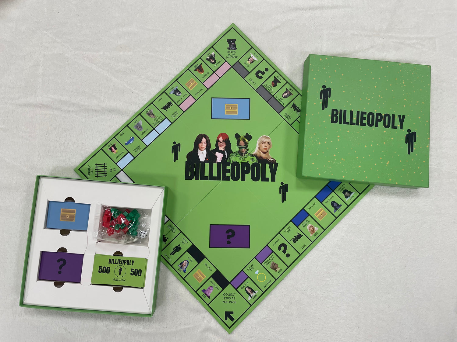 Join Billie on a journey through her iconic eras, locations, and moments all in one epic board game made for her biggest fans! 💚🎲